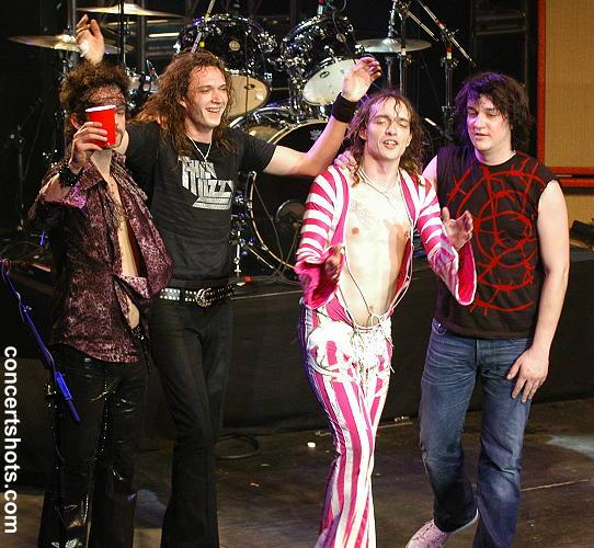Thats what The Darkness are, you know? They are the new kings of rock - unapologetic, ridiculous and fun as hell. After opening with a bludgeoning double shot of Bareback and Black Shuck, the madness just got madder. A surprisingly diverse audience from 10 to 50 years old shouted back every word. The Darkness lifted all the right moments from rock history. Queen was channeled during the solo for the heroin ode Giving Up, the spirit of 1,000 lighter waving power ballads haunted the room for Love Is Only A Feeling and the ghost of Thin Lizzy never left. AC / DC was represented with the Thunderstruck lick of Making Out and Justin Hawkins audience ride on the shoulders of security. During the ride, he teased the crowd with Aerosmiths Walk This Way which wasnt as random a riff as it may have seemed. You see, Steven Tyler and Tom Hamilton were actually in the crowd soaking the new boys in from their royal box balcony seats. Thats not all, Cheap Tricks Rick Nielson and Bun E. Carlos were spotted bopping along to Growing On Me. This was an unprecedented rock and roll event and it was immediately clear why this show sold out in 9 minutes flat. This is one of those rare instances where buzz and the every man meet. Just the wardrobe malfunction that caused Hawkins to stuff a tiny Union Jack down the crotch of his broken zippered metallic gold and red jumpsuit during Friday Night was something Ill never forget. The only thing more disturbingly laughable was the way the crowd dived for this sweaty souvenir when he tossed it.